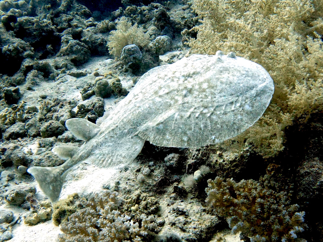 An diesem wunderschönen und windstillen Mittwochmorgen starteten wir unsere Ganztagestour mit einem kräftigen Applaus für den Captain und die Crew der MS Bahlul. Nach kurzer Absprache entschieden wir uns einhellig, nach Shaab Pinky zu fahren. Der Weg dorthin verlief schaukelfrei und nach etwa einer Stunde Fahrt kamen wir an. Nach dem Briefing zogen wir unser Equipment an und sprangen mit großer Vorfreude ins Wasser. Wir machten einen Drift Pick Up und sahen während des Tauchgangs Muränen, Blaupunktrochen, eine Schildkröte und einen kleinen Adlerrochen. Nach etwa einer Stunde schossen wir die Boje und ließen uns vom Boot abholen, bauten unser Equipment um und genossen anschließend das leckere Mittagessen der Crew.