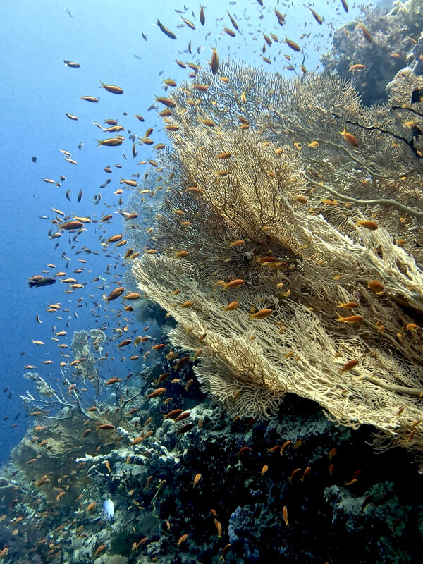 Die Musa brachte uns heute nach Stone Beach, auch bekannt als Hamda (Arabisch für Rot) wegen der Farbe der Felsen. Zu sehen bekamen wir Rotfeuerfische, Meerbarben und Meeräschen.