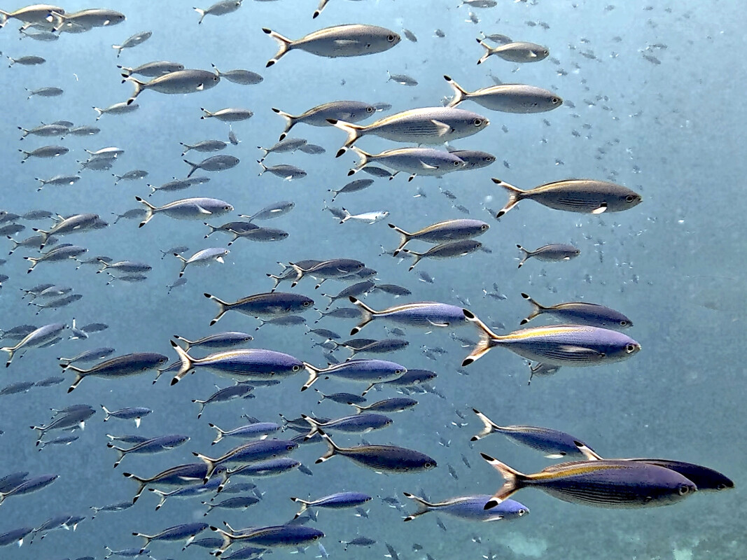 Mit der Joker ging es heute bei deutlich weniger Wind als gestern und bei Sonnenschein Richtung Fanadir Foc zum ersten Tauchgang. Nachdem das Boot angelegt hatte, sind wir direkt ins Wasser gegangen und haben unseren Tauchgang gestartet. Entlang der Drop-off-Kante sind wir Richtung Norden getaucht. Zwischen den vielen kleinen Fischen entdeckten wir auch einen kleinen Oktopus, der jedoch eher scheu war und sich uns leider nicht richtig gezeigt hat. Immer wieder konnte man direkt unter der Wasseroberfläche einen Schwarm Milchfische beobachten, die gerade am Fressen waren und zügig sowie in Formation umherschwammen. Auf dem Rückweg begegnete uns noch ein riesiger Schwarm Sergeants, durch den wir hindurchtauchen mussten, weil er so groß war – ganz nach dem Motto: „Vor lauter Fisch das Wasser nicht mehr gesehen.“
