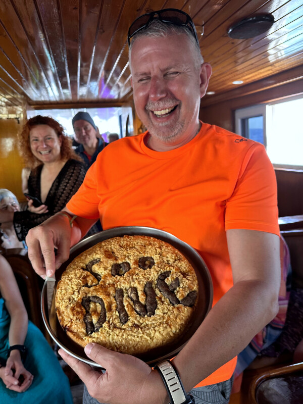 Wir starteten auf dem Südplateau und navigierten uns zum magischen Drop-Off. Dort zogen sechs stattliche Thunfische an uns vorbei, bevor wir wieder flacher gingen, um das Plateau zu bestaunen – Tischkorallen so weit das Auge reicht, in der Strömung wehende Weichkorallen und zwei freischwimmende Riesenmuränen als Highlight. Zum krönenden Abschluss gab’s Streuselkuchen, um den 500. Tauchgang von Markus gebührend zu feiern. Herzlichen Glückwunsch – auf die nächsten 500 mit James & Mac!