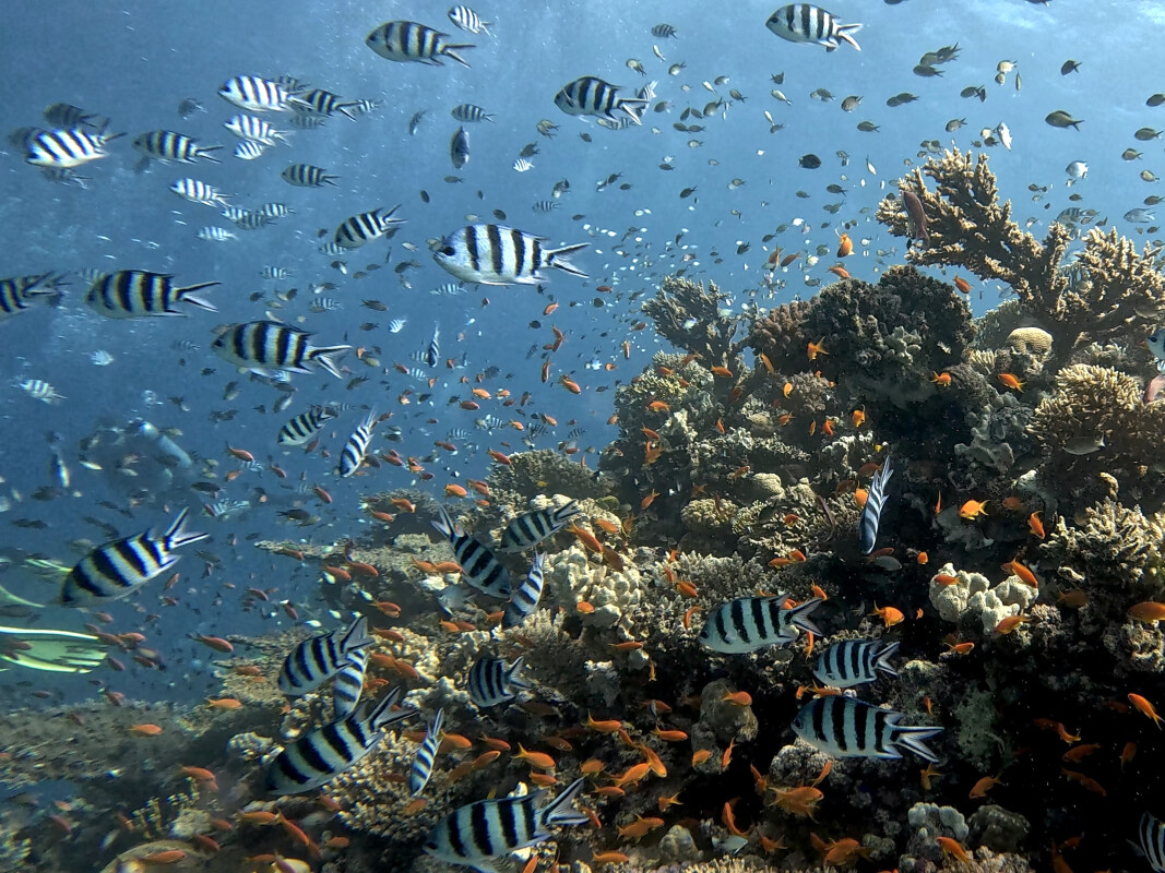 Nach einer Mittagspause und Stärkung ging es weiter nach Shaab Quais Maksur. Dort hieß es: den Ponyblock beäugen und zwischen all den Fahnenbarschen und unzähligen jungen Füsilieren nach giftigen Tarnkünstlern suchen. Ein Steinfisch wurde entdeckt und gleich vier Zwergfeuerfische! Dann ging es zurück zur Basis, um im Shaab Stella den Tag ausklingen zu lassen. Salzig-sonnige Grüße von Mona!