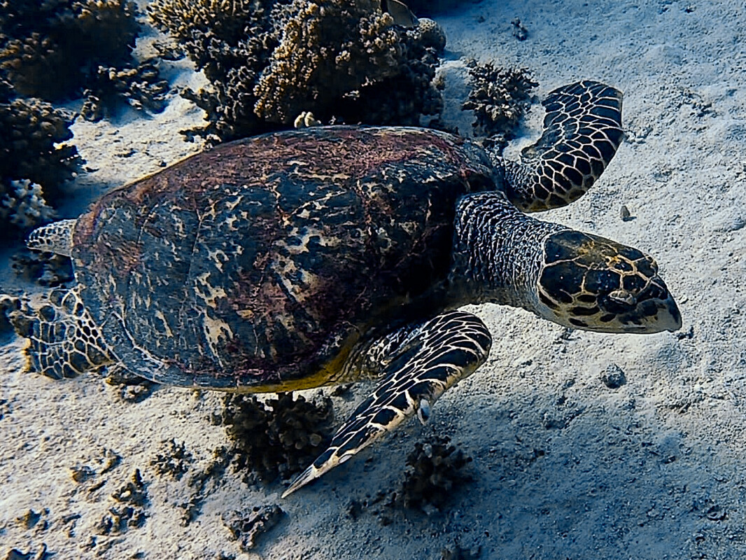 Hallöchen von der Galambo. Alle Mann und Frau an Bord und schon ging’s los, natürlich erst nach einem tosenden Applaus für Kapitän und Crew. Der Wind von gestern ist Geschichte und somit machten wir uns auf Richtung Norden. Unser erstes Ziel: Shaab Samir. Dieser tolle Platz wimmelt nur so von Fisch – Meerbarben, Doktorfische, Feuerfische und Fahnenbarsche schwammen uns vor die Linse. Das Highlight war heute aber Susi Schildkröte! Sie schwamm mit uns und fühlte sich in unserer Gruppe sichtlich wohl. Jede Kamera konnte sie in ihrer vollen Schönheit einfangen. Somit hatten wir heute einen Turtle-Thursday.