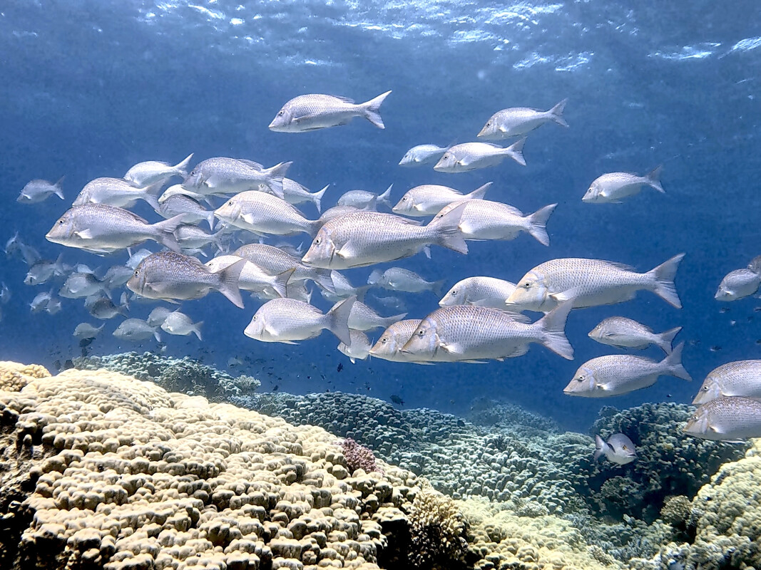 Nach einer entspannten Mittagspause mit toller Verpflegung durch unsere Crew ging es weiter zu Shaab Sabina für einen Drift zur Leine. Auch dort begegneten uns unzählige Schwarmfische wie Meerbarben und Füsiliere, außerdem zwei Thunfische, ein Blaupunktrochen, Rotfeuerfische und Riesenmuränen. Gegen 15 Uhr ging es dann zurück in Richtung Basis, um bei Shaab Stella den Tag gemütlich ausklingen zu lassen. Liebe Grüße von Sandra und Mona!