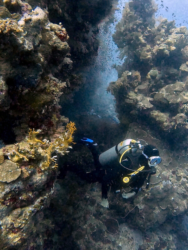 Bevor die Reisenden tiefer in das blaue Königreich durften, verlangte das Meer eine kleine Prüfung. Ein Checkdive – ein Ritual der Balance. Blei wurde gewogen, Atem beruhigt, und das salzige Wasser flüsterte: „Willkommen, Fremde.“