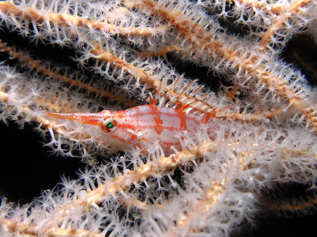 Für den zweiten Tauchgang entschieden wir uns für Carlson’s Corner. Wir starteten gemeinsam an der Leine und begannen unsere Erkundung. Schon früh entdeckten wir einen Teppich-Krokodilfisch sowie den ersten von mehreren Weißflecken-Kugelfischen. Es folgten Spitzkreisel- und Spinnenschnecken, Torpedobarsche, eine Riesenmuräne und mehrere Fransen-Drachenköpfe. Zufrieden und erfüllt von den vielen Eindrücken machten wir uns auf den Rückweg in unseren Heimathafen – und natürlich in unsere Shaab Stella Bar, wo wir den Tag entspannt ausklingen ließen.
