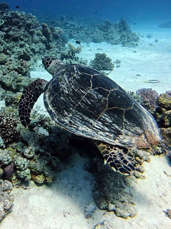 Grinsende Gesichter kamen zurück auf die Scharara, um das Mittagsbuffet zu genießen. Jetzt noch ein wenig pausieren, bevor es wieder unter die Wasseroberfläche geht. Die Wahl des zweiten Plateaus fiel auf Erg Sabina, den wir als Drift zur Leine machten. Nach dem Abtauchen ging es direkt zum ersten Block, der nur so von Schwarmfisch wimmelte – Fahnenbarsche, Füsiliere und Meerbarben. Weiter ging es über den Korallengarten mit Arabischen Kaiserfischen, Doktorfischen und Flötenfischen. Doch dann das nächste Highlight für diesen Tag – die Meeresschildkröte schwamm genüsslich mit uns ihre Runden. Am Hauptblock wieder angekommen trafen wir auf zwei Scherenschwanz-Torpedogrundeln, die entspannt am Riff chillten. Zurück auf dem Boot gab es noch einen Grund zu feiern – unser Gast Anja hat heute Geburtstag, ein Grund, sich über den Kuchen herzumachen. Was für tolle Erlebnisse heute – bis morgen sagen Simone & Thorsten!