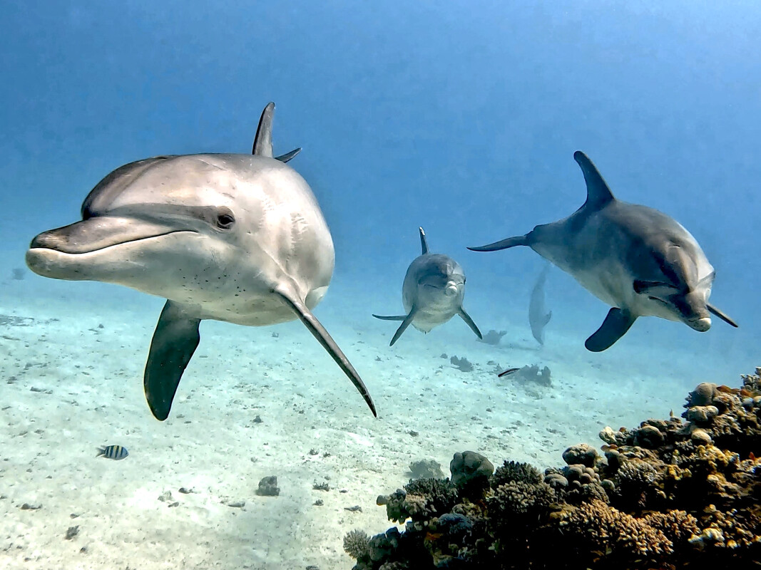 Für den zweiten Tauchgang blieben wir vor Ort, machten diesmal jedoch einen Drift zur Leine. Hier zeigten sich recht früh erneut drei Delfine (vermutlich dieselben wie beim ersten Dive) und zum Ende verabschiedete uns eine Gruppe mit fünf weiteren. Zwei von ihnen, eine Mutter mit Kind, schwamm direkt zwischen uns durch als wenn sie sich für jeden stolz präsentieren wollten. Es war ein aufregender Tag und jetzt freuen wir uns auf unsere Shaab Stella Bar! Herzliche Grüße von Jo, Tobi und Thorsten